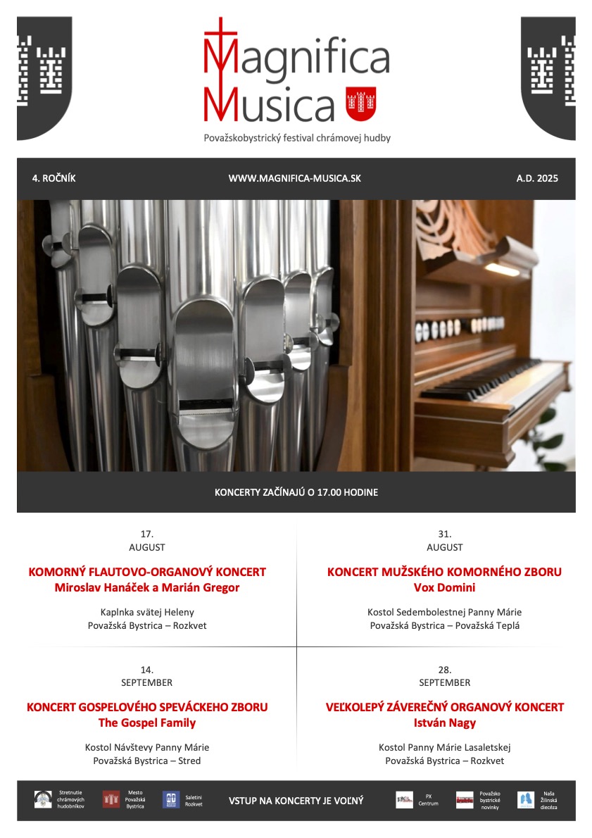 Chrámová hudba v sebe ukrýva niečo neskutočne silné. Je to hudobné umenie, ktoré slúži na oslavu samotného Boha, ale zároveň aj posvätenie a kultúrne obohatenie človeka. Nech sú nositeľmi a pripomienkou tejto nezvratnej skutočnosti dve latinské slová – Magnifica Musica.